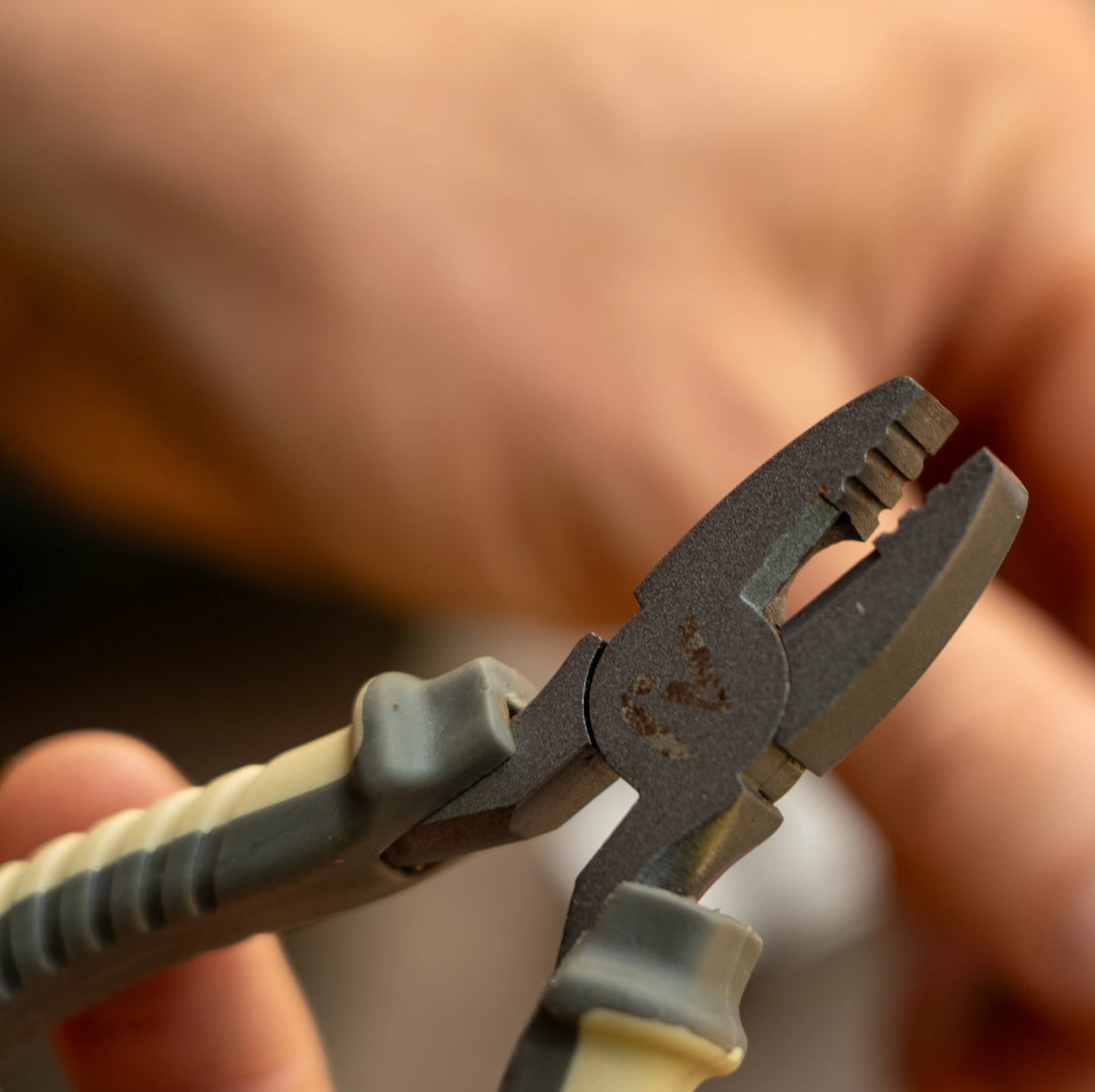 The CRIMP MY STYLE Tool takes the hassle OUTof knot tying! Delivering clean, secure crimps every time. Precision grooves for 0.5, 0.6, and 0.7mm crimps make it perfect for a wide range of Stiff Coated Braids, Monofilament and Fluorocarbon Hooklink materials.