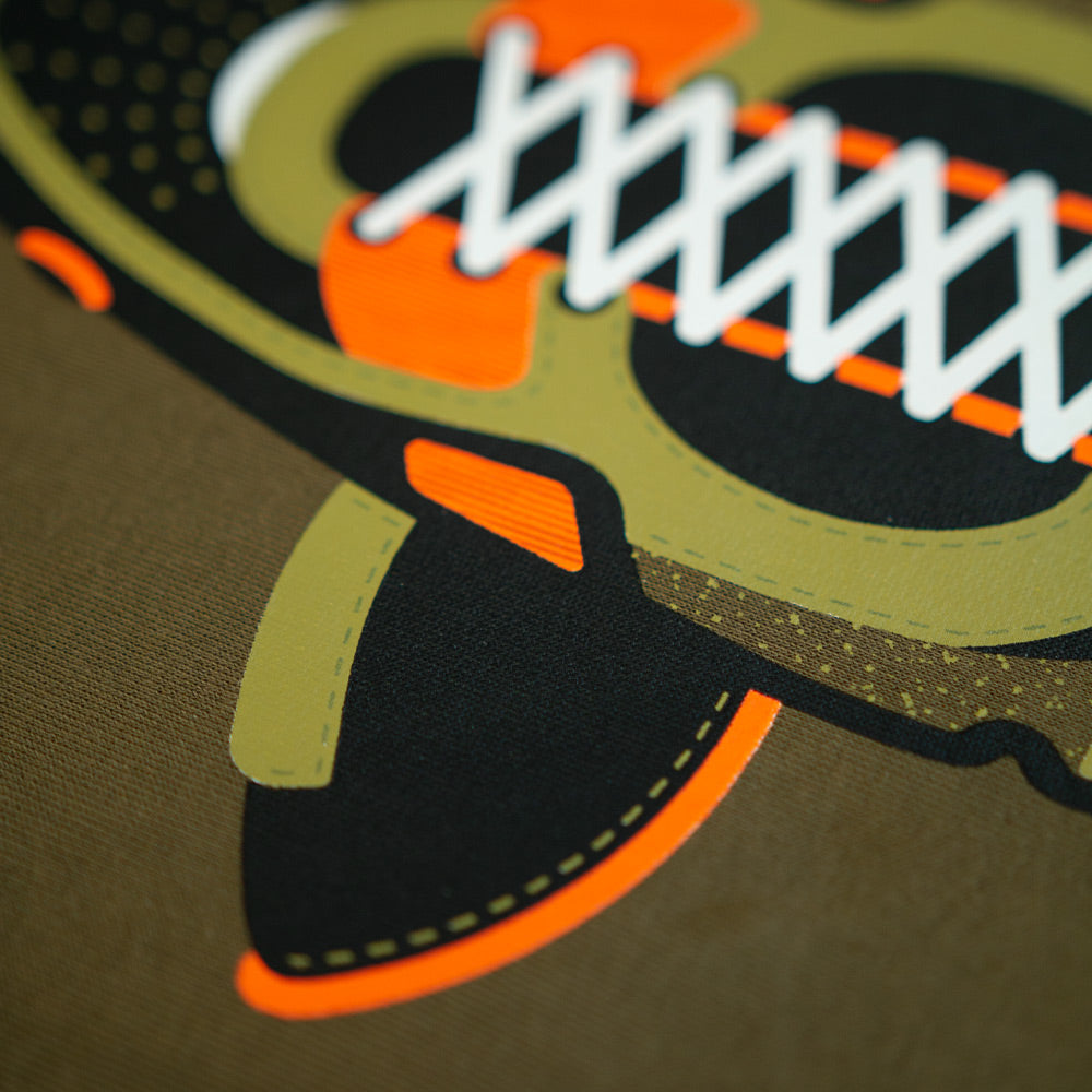 One for all you sneaker-heads out there. Our True Leather graphic is inspired by classic AirMax trainers. Printed on our super soft 320gsm fabric with woven side tab detailing.