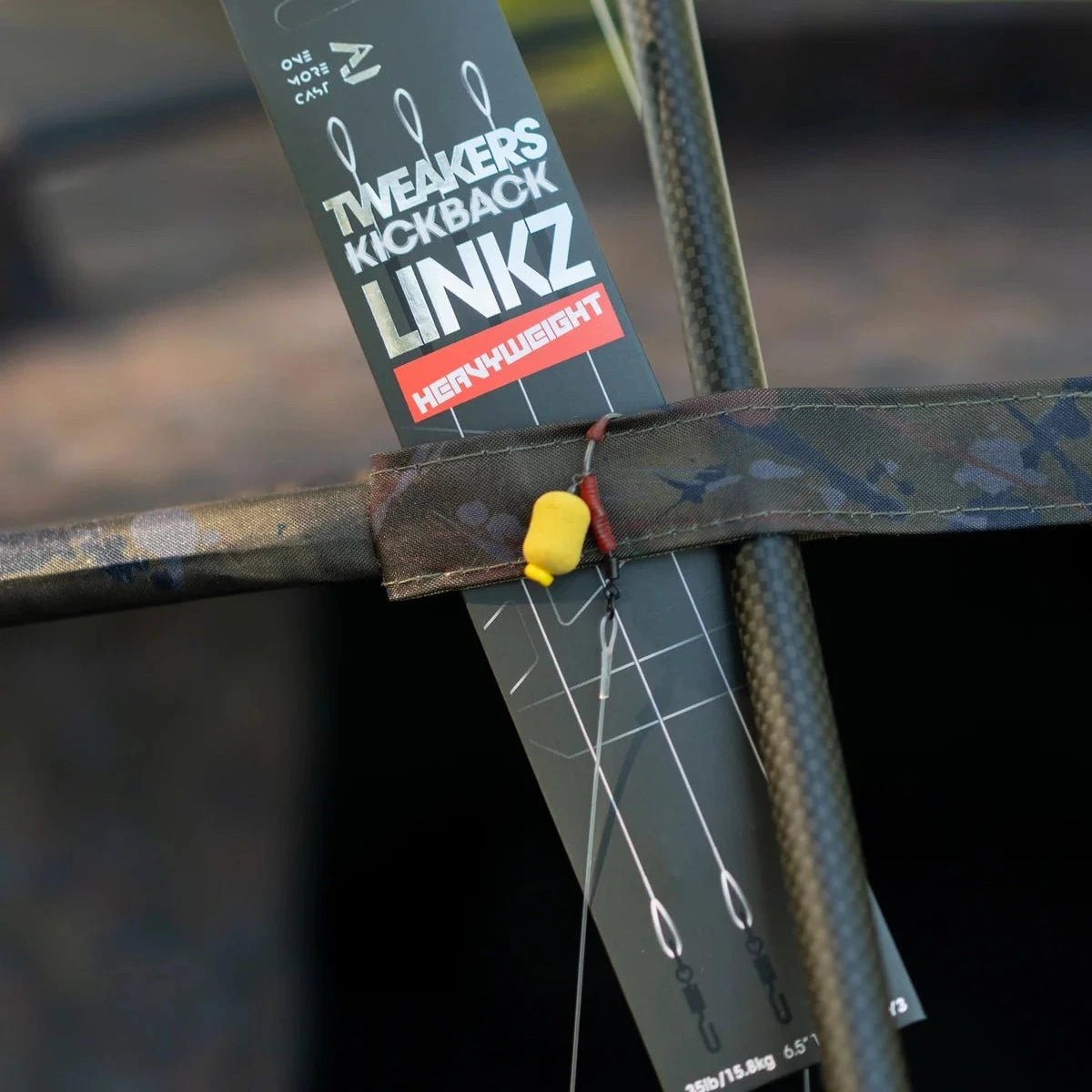 Introducing the OMC Tweakers Kickback Linkz HEAVYWEIGHT! This beast is built with a Special Edition fused fluorocarbon 35lb Kickback Hooklink, loaded with a VITABITZ Spinner Swivel at the business end ready to build your RONNIE Rig. Complete the Rig by attaching the Fused Loop to your Vitabitz QC Swivel at the Lead System end, slide the 30mm Blend Tungsten Anti-Tangle sleeve over and you’re ready for battle.